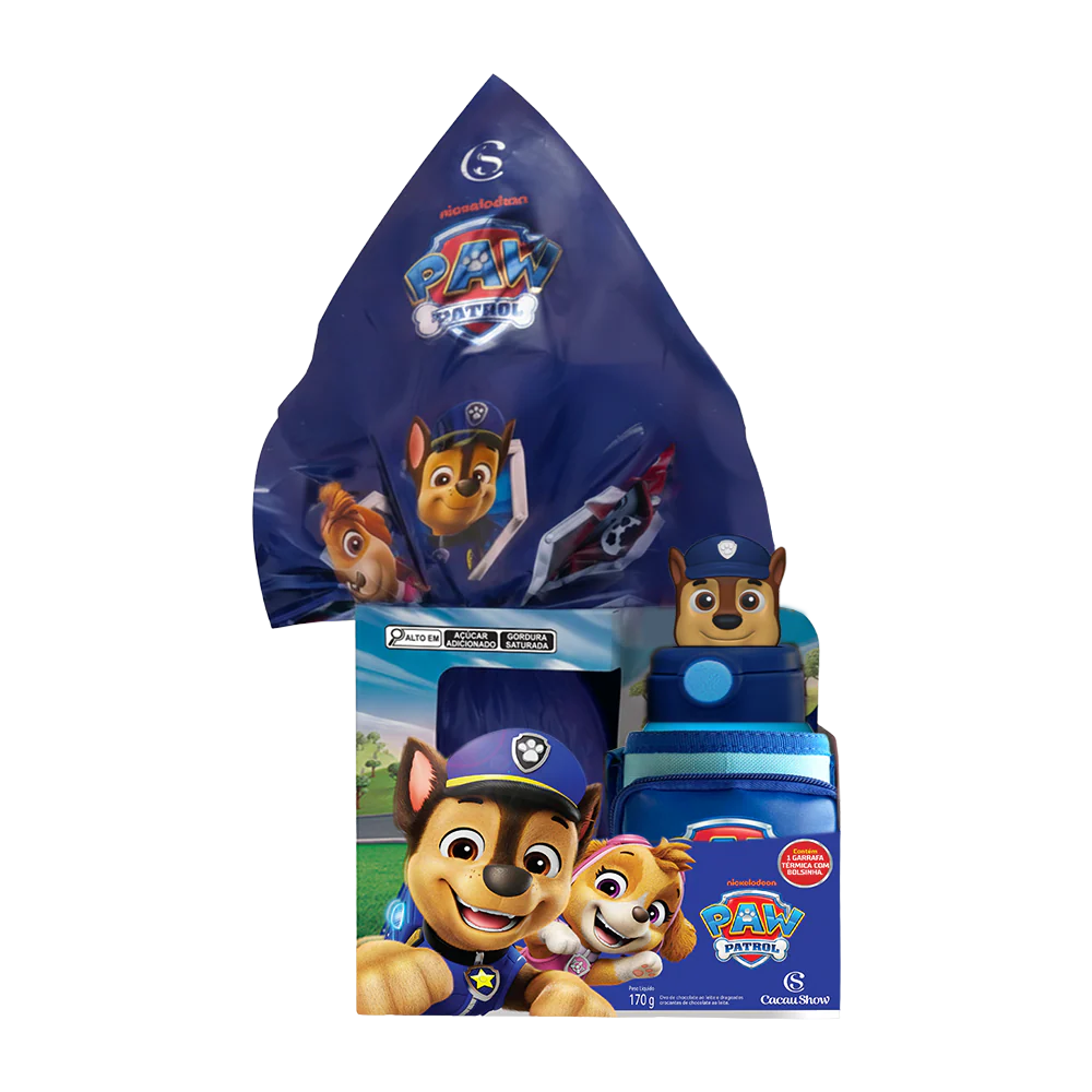 O Ovo de Páscoa Patrulha Canina é a escolha ideal para quem ama sabor e diversão! Produzido com o cremoso chocolate ao leite, ele acompanha drageados crocantes que deixam cada momento ainda mais gostoso. E para completar, vem com uma garrafa exclusiva do Chase, o presente perfeito para as crianças!
