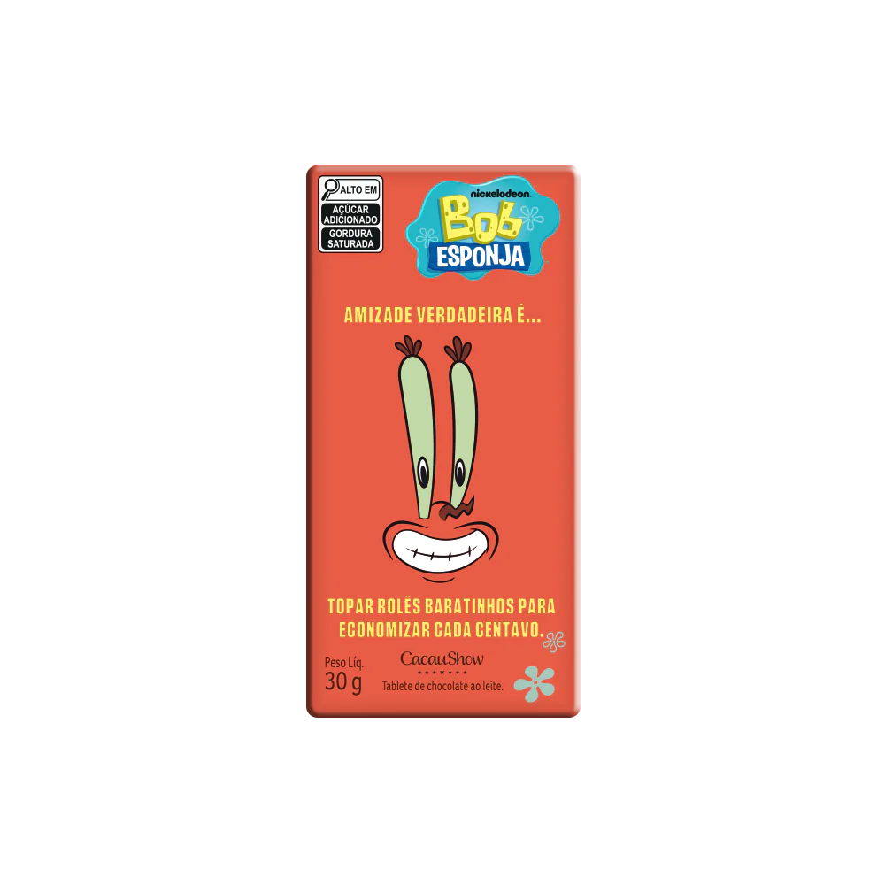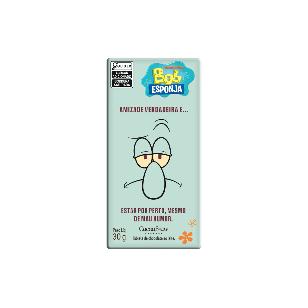 Leve alegria e sabor para o seu dia com os Tablete da Turma do Bob Esponj! Feitos com o irresistível chocolate ao leite, esses tabletes trazem muito sabor, embalagens variadas e frases inspiradoras sobre os personagens da turma mais animada da Fenda do Biquíni, celebrando os diferentes tipos de amizades.